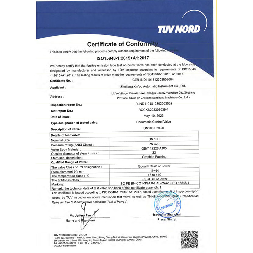 調(diào)節(jié)閥 微泄露證書 1