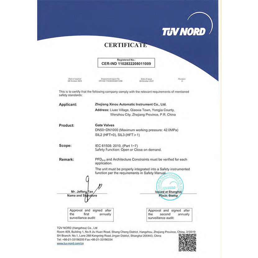 閘閥 SIL證書 1